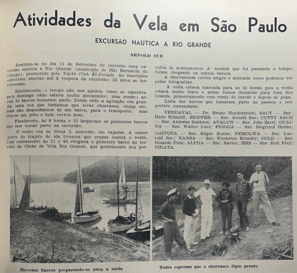 Artigo sobre a Volta da Represa Billings dia 29 de abril de 1951 na Revista Yachting Brasileiro No. 80 de junho de 1951. Todos os direitos reservados. Proibida sua reprodução.