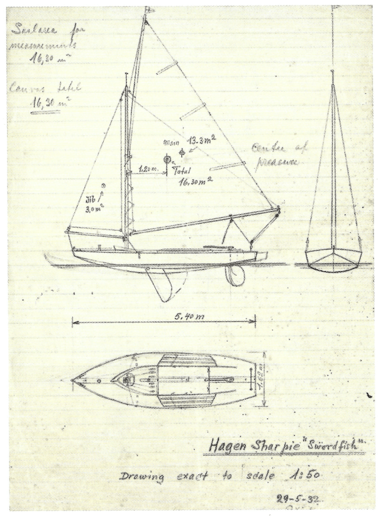 No ano 1915, do conhecimento e da experiência marinheira do Sr. Hagen, saiu de sua prancheta o design do monotipo “Hagen-Sharpie”.