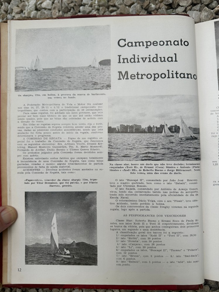 Artigo na Revista Yachting Brasileiro No. 62 de dezembro de 1949 – Campeonato Metropolitano de 1949. Todos os direitos reservados. Proibida sua reprodução.