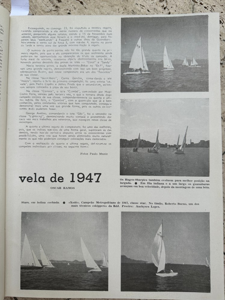 Artigo na Revista Yachting Brasileiro No. 39 de janeiro de 1948 – Campeonato metropolitano de vela de 1947. Todos os direitos reservados. Proibida sua reprodução.