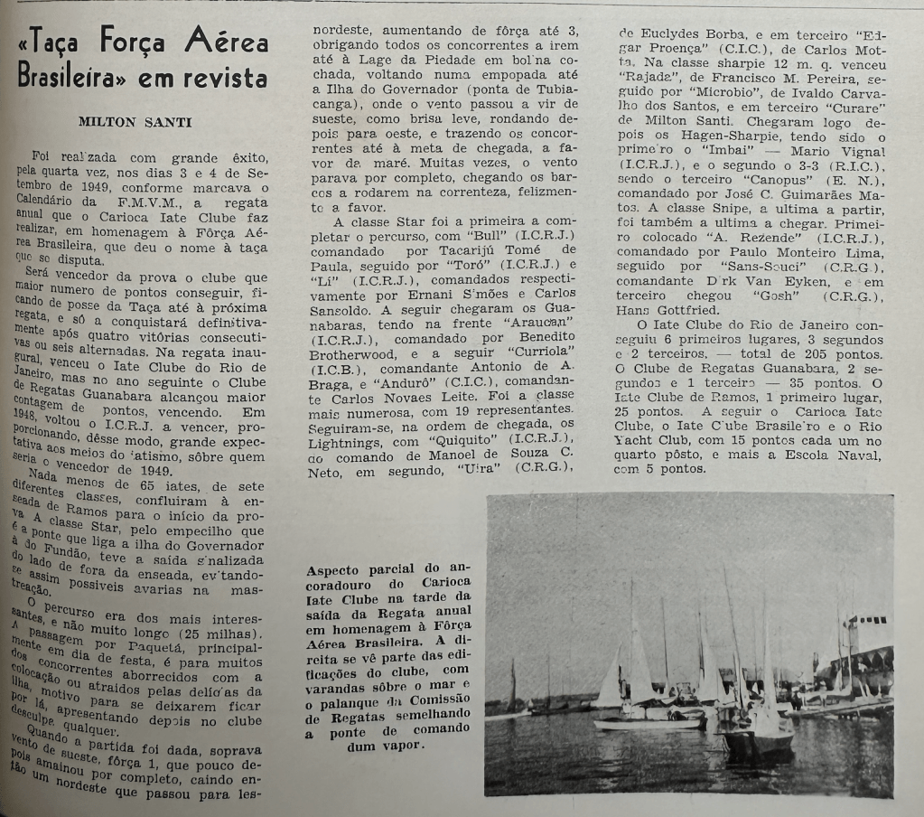 Artigo na Revista Yachting Brasileiro No. 76 de fevereiro de 1951 – Rio Yacht Club – Regatas inter-clubes. Todos os direitos reservados. Proibida sua reprodução.