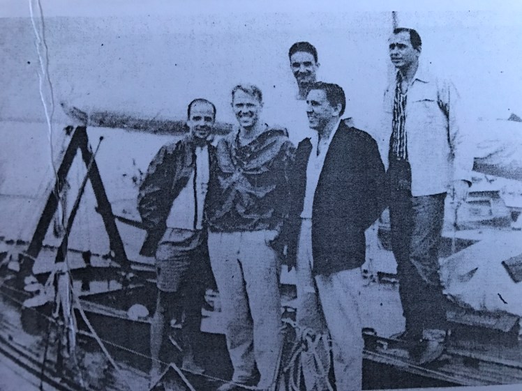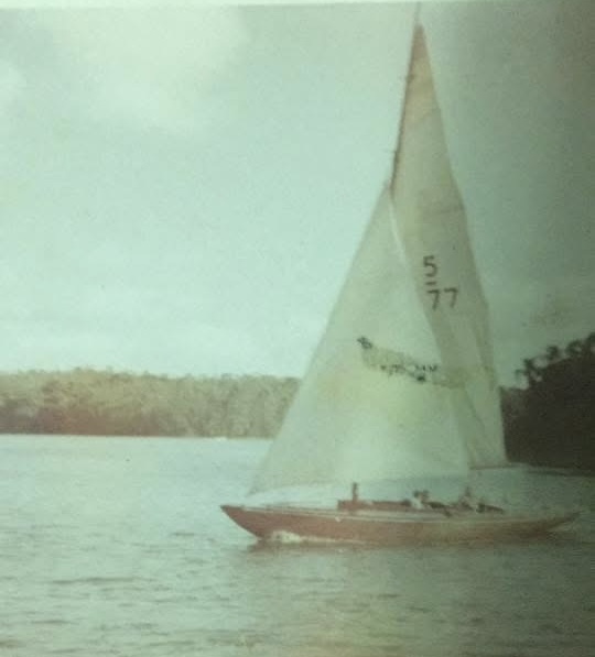 Inclusive o 5m, de nome Sjutusa, foi a minha primeira velejada na vida (2 meses de vida)! Comecei em grande estilo. Um “italiano” o abonou e foi o ultimo dono. Pelo que eu soube, ficou um bom tempo no estaleiro do Flório (nada de novo para veleiros de madeira).
