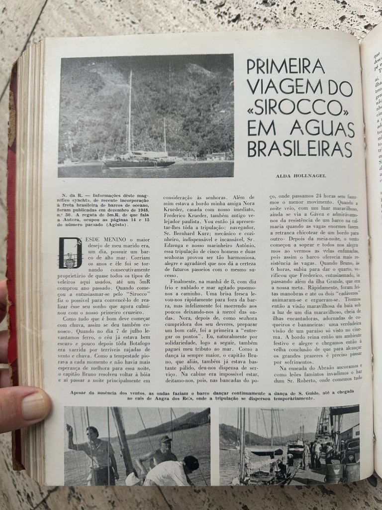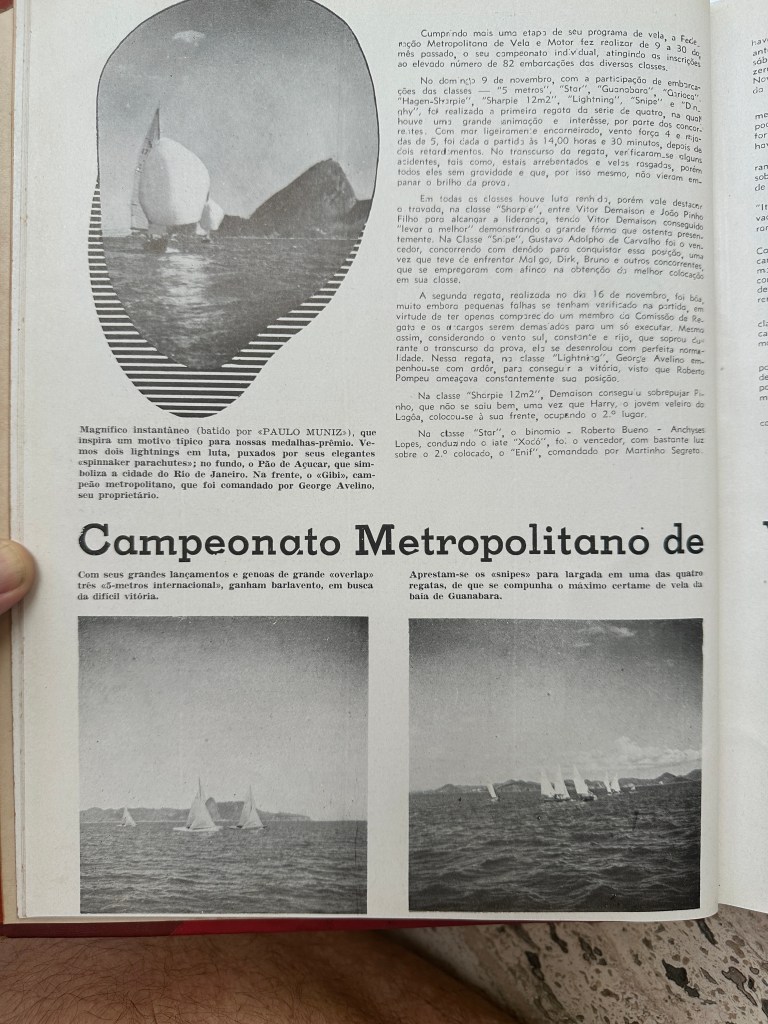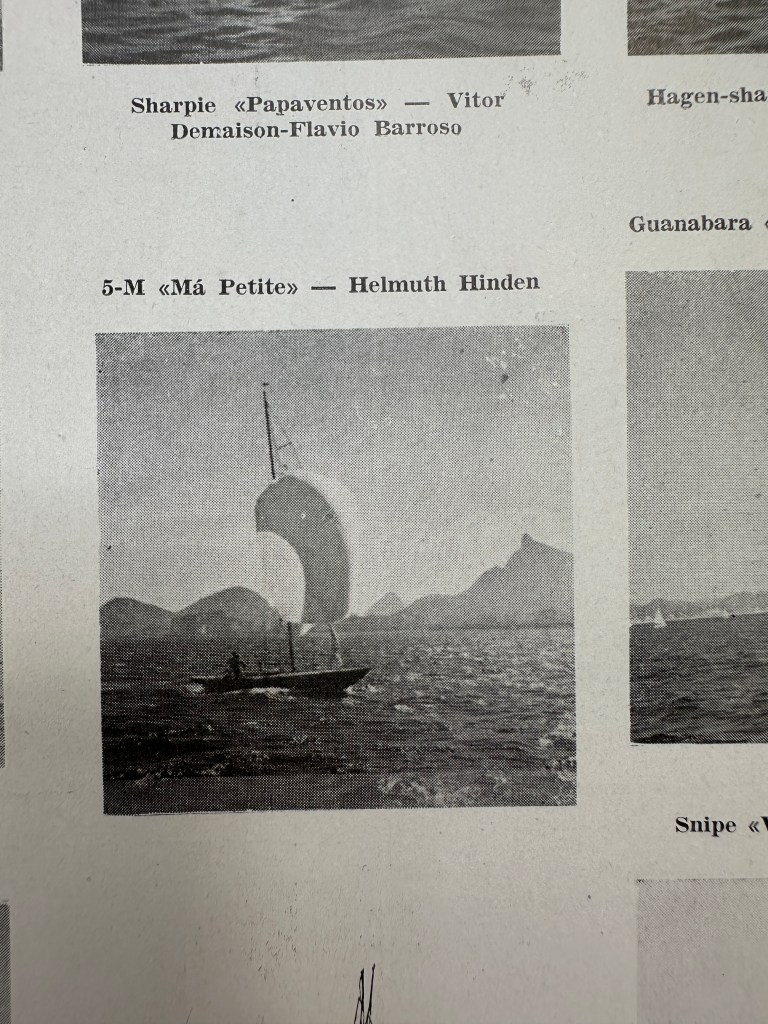 Mas voltemos no tempo para 1947… como mencionado, nesse ano, três veleiros da Classe 5m RI participavam do Campeonato Metropolitano de Vela, realizado na baía de Guanabara no Rio de Janeiro, em quatro dias de regata no mês de novembro (dias 9, 16, 23 e 30). A competição terminou com o veleiro Má Petite (Greif), comandado por Helmuth Hinden em primeiro e com o veleiro Sjomej, comandado por Fernando Pimentel Duarte em segundo. Infelizmente, não encontrei menção do nome do terceiro 5m RI e nem de seu comandante.