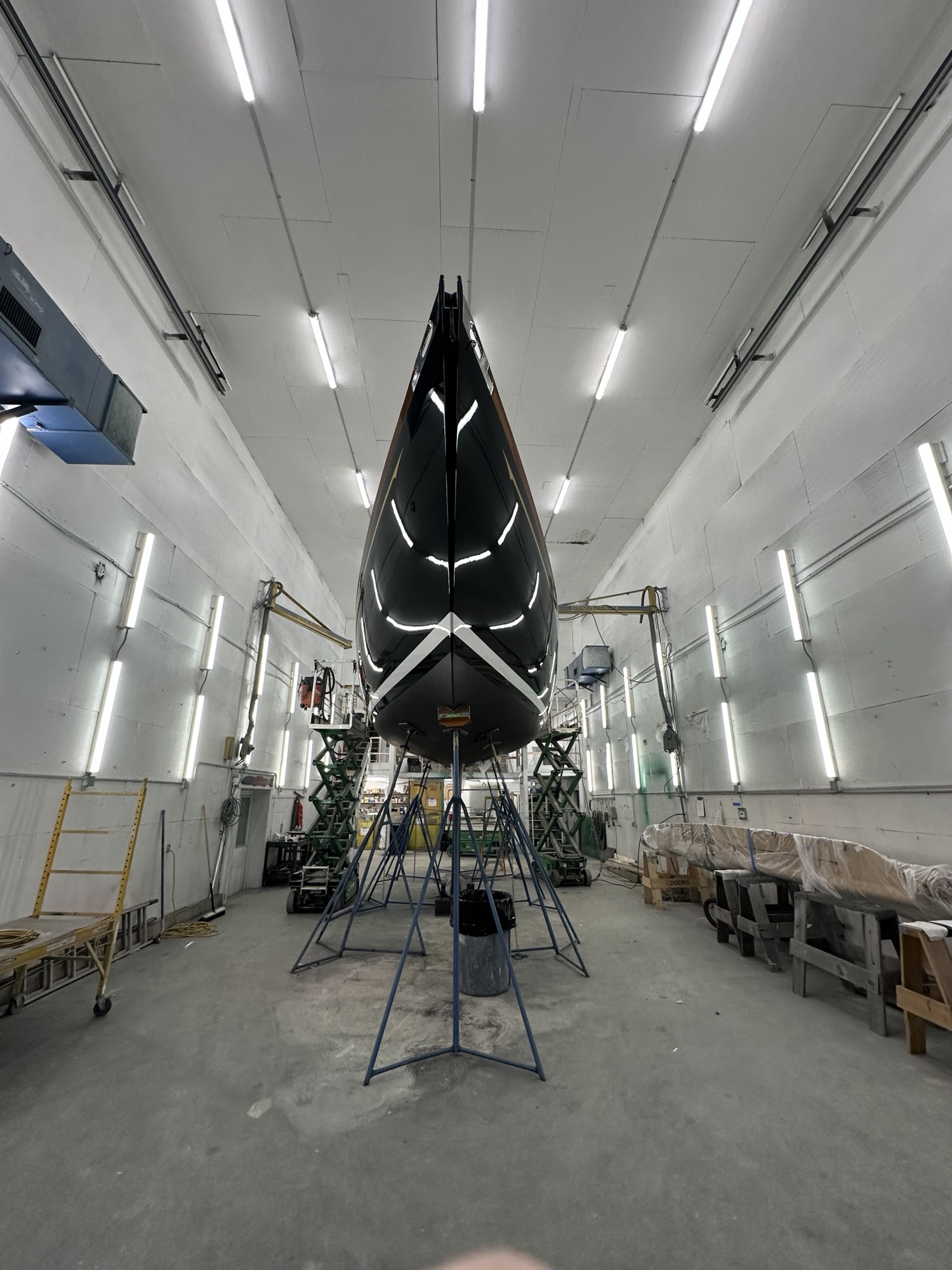 Todo barco novo, geralmente, começa da mesma maneira… com uma chapa de compensado branco, frequentemente revestida com lâmina melamínica (fórmica) ou PET, onde são reproduzidas as plantas originais em papel do designer para seu tamanho real (proporcional).
