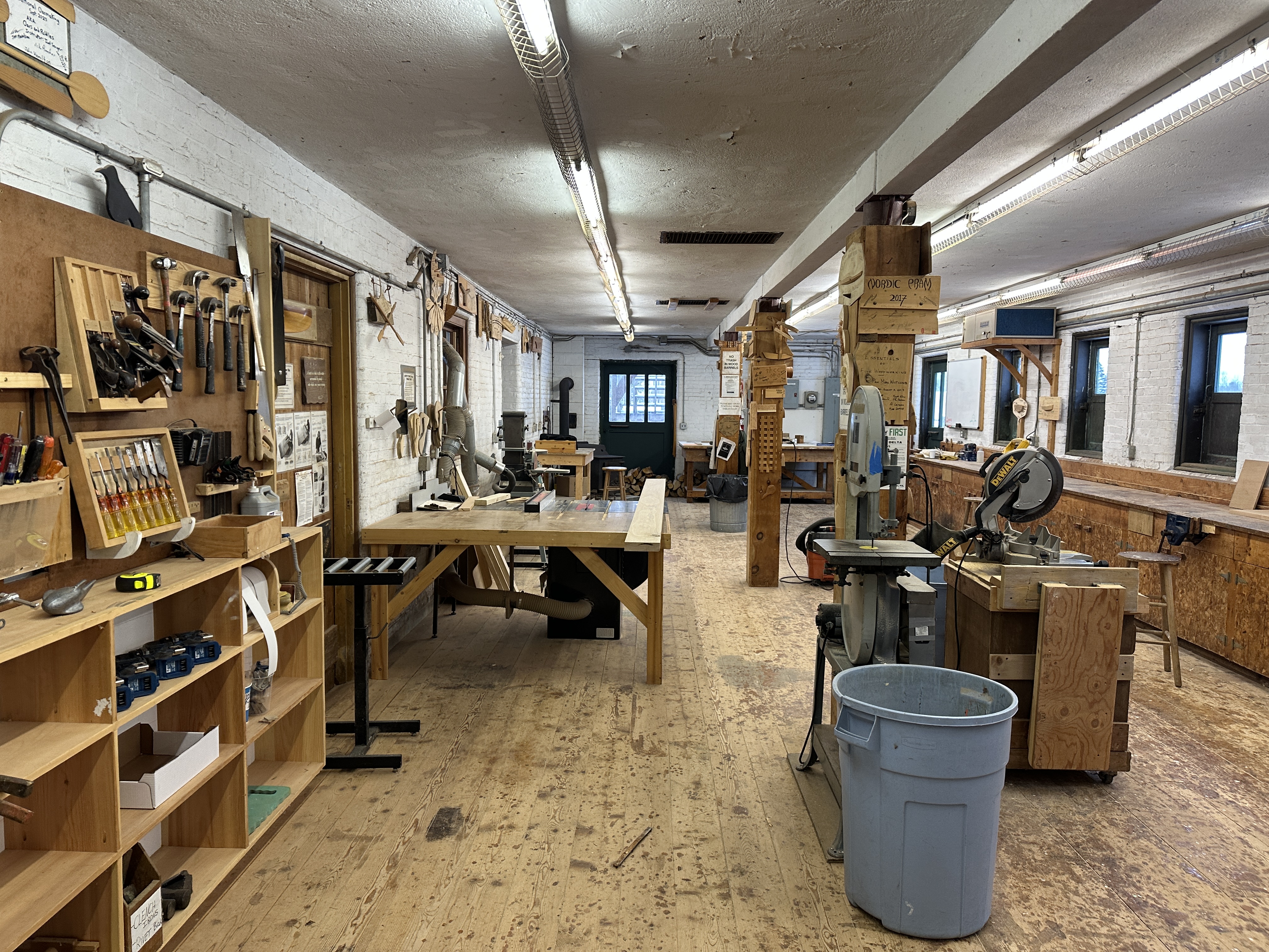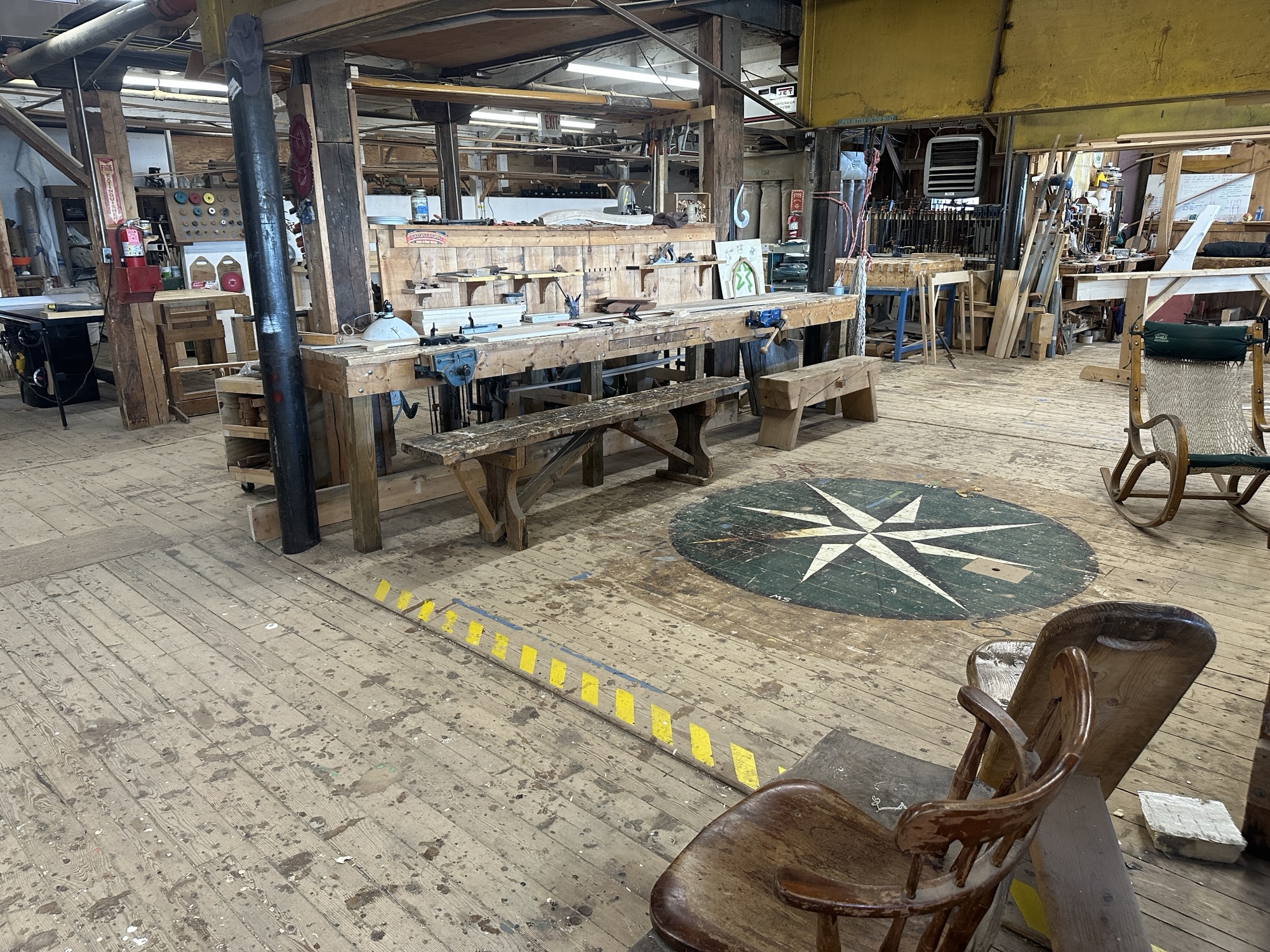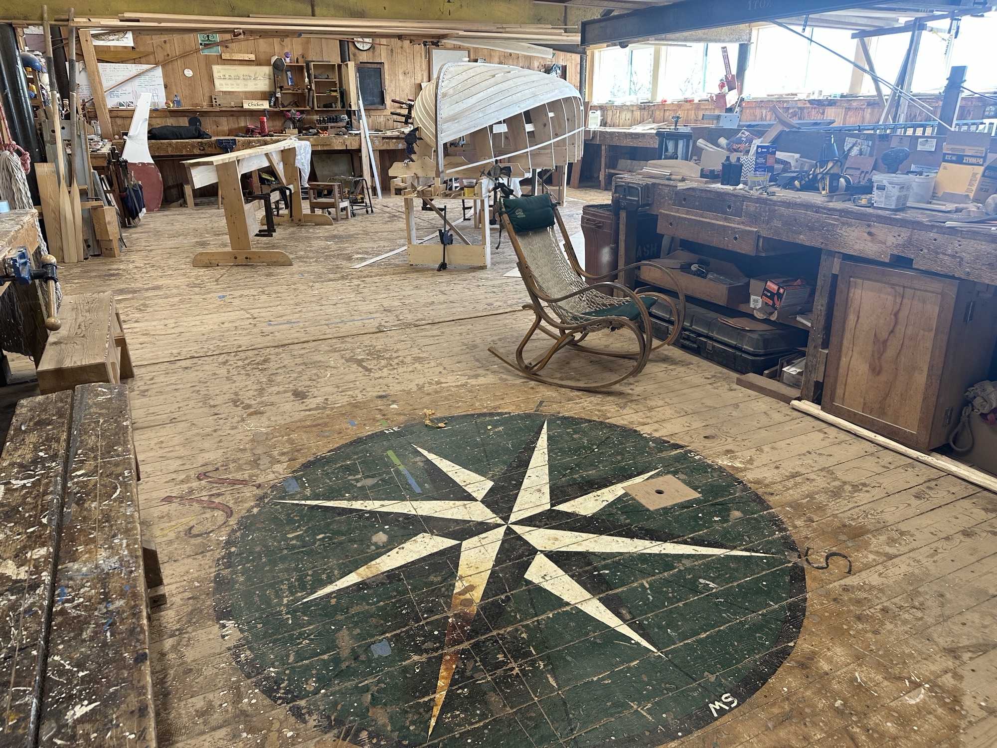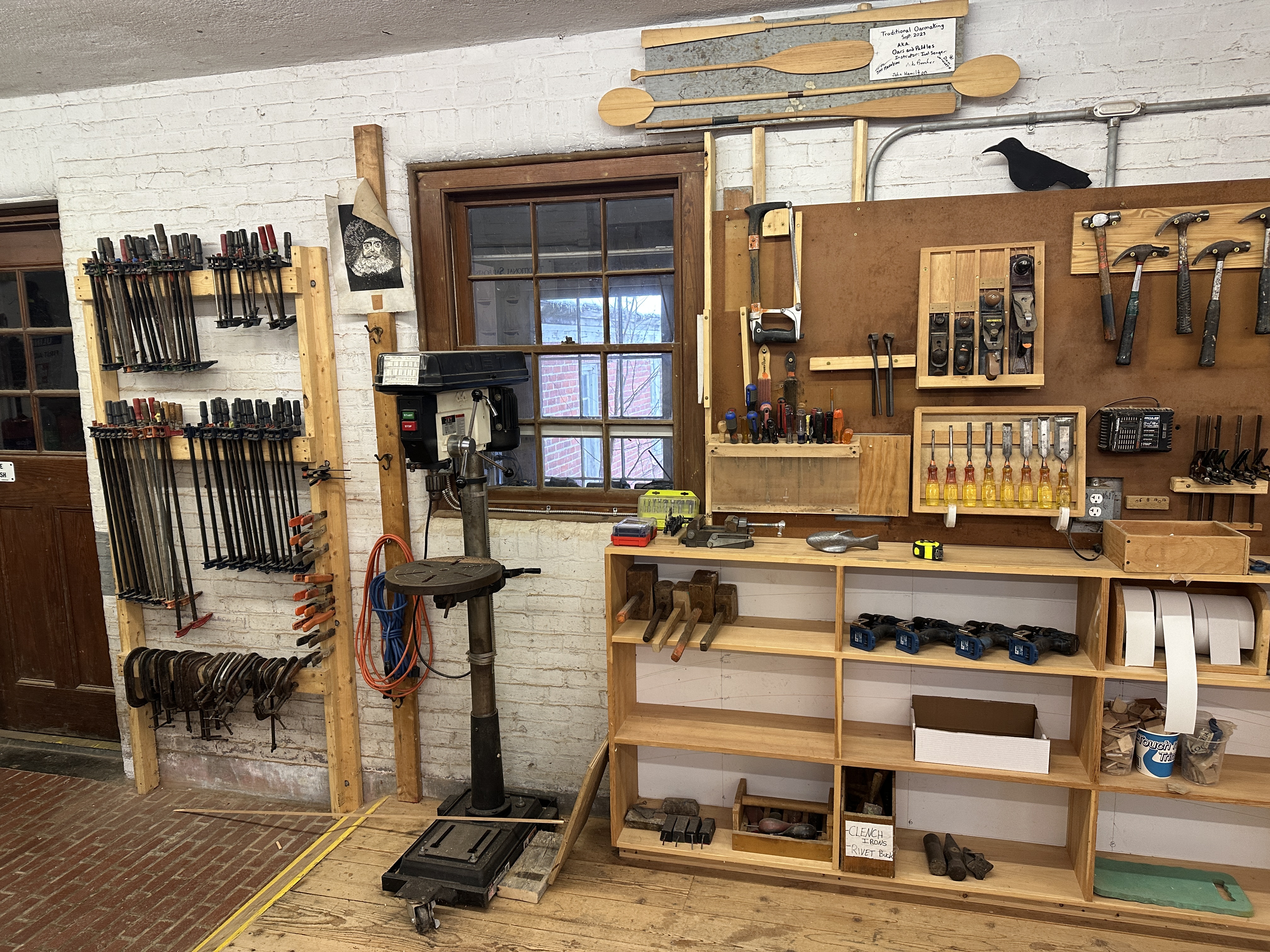 A oficina da WoodenBoat School, os equipamentos e os materiais disponíveis para os alunos são excelentes.