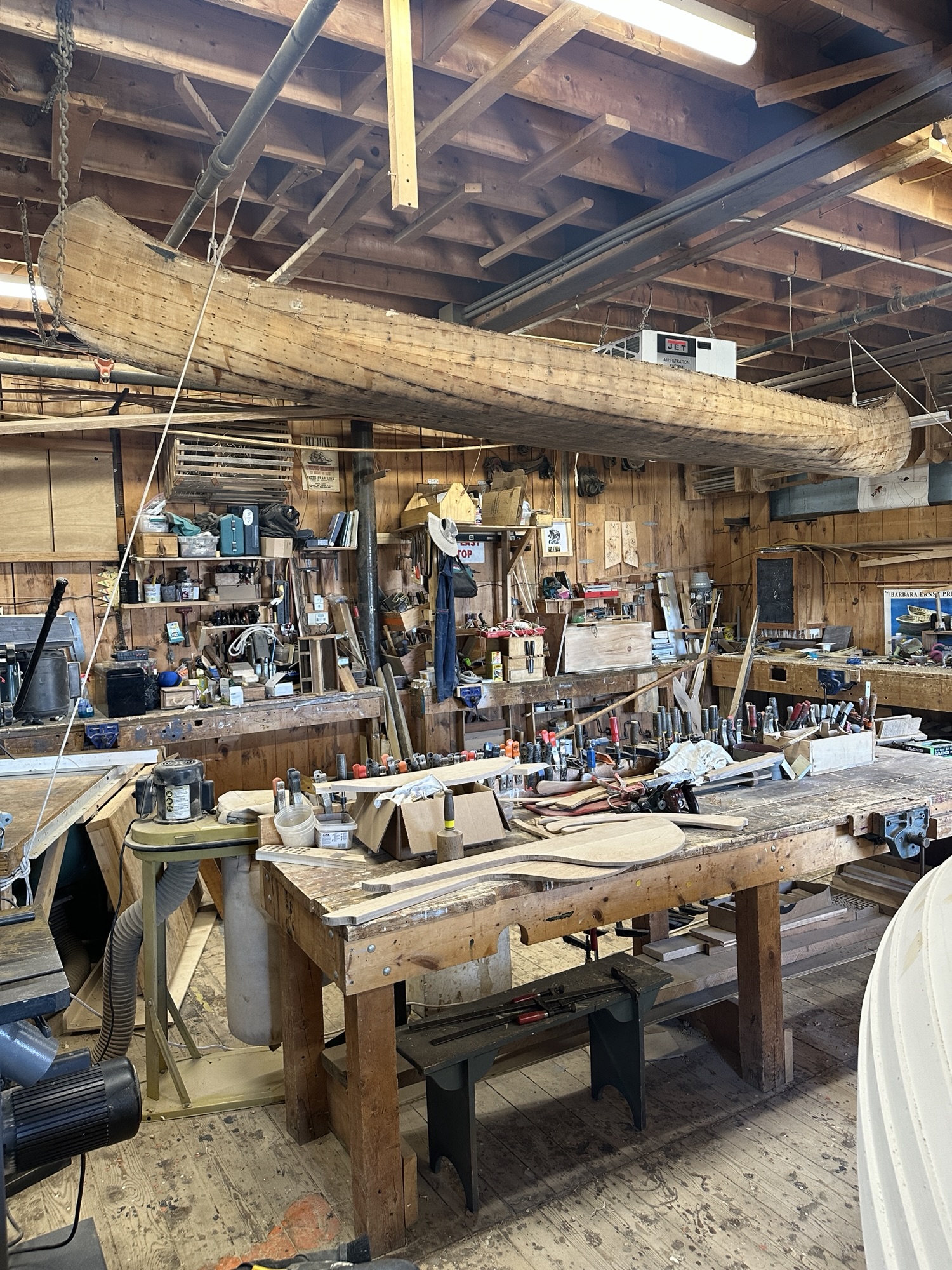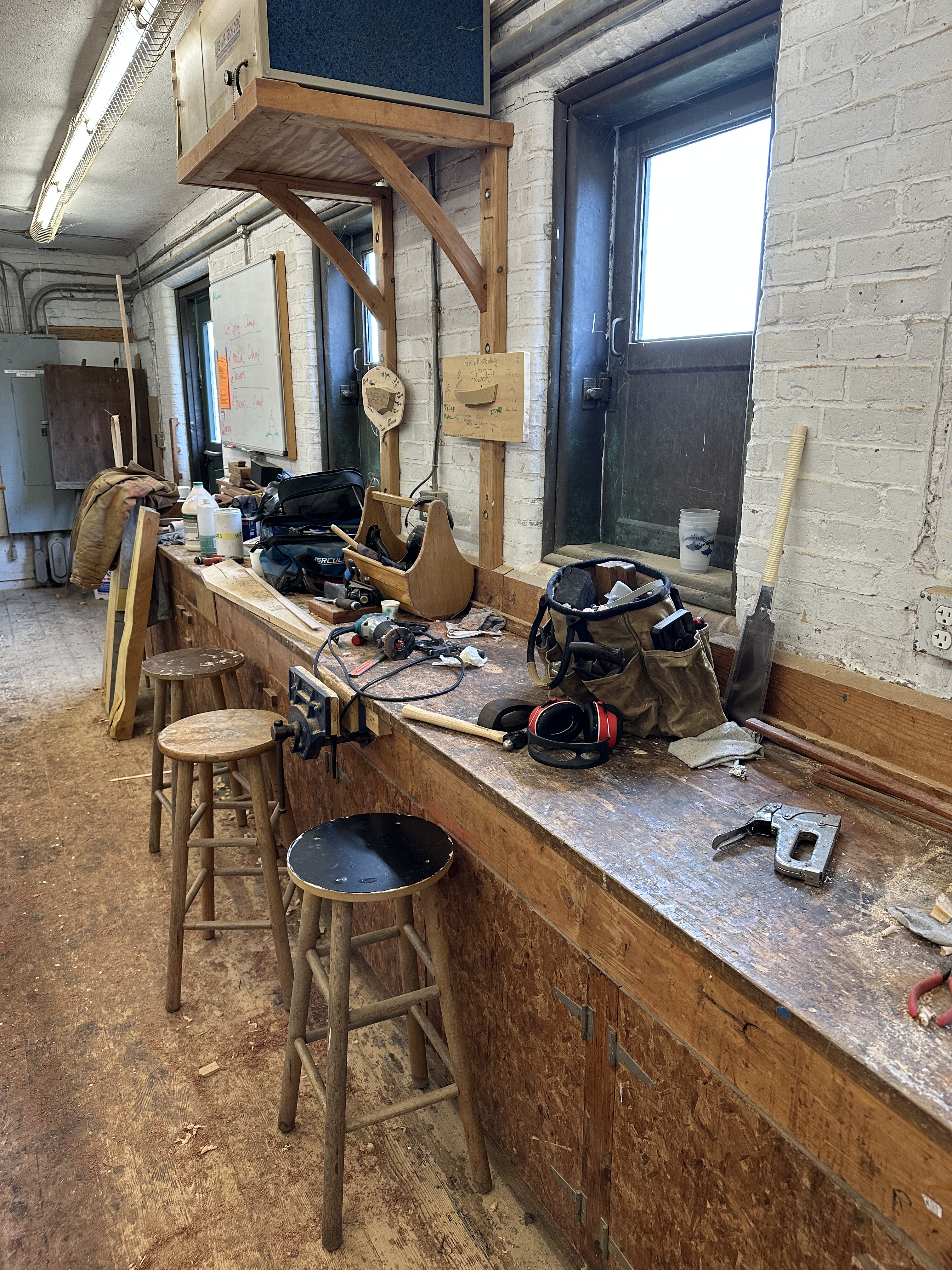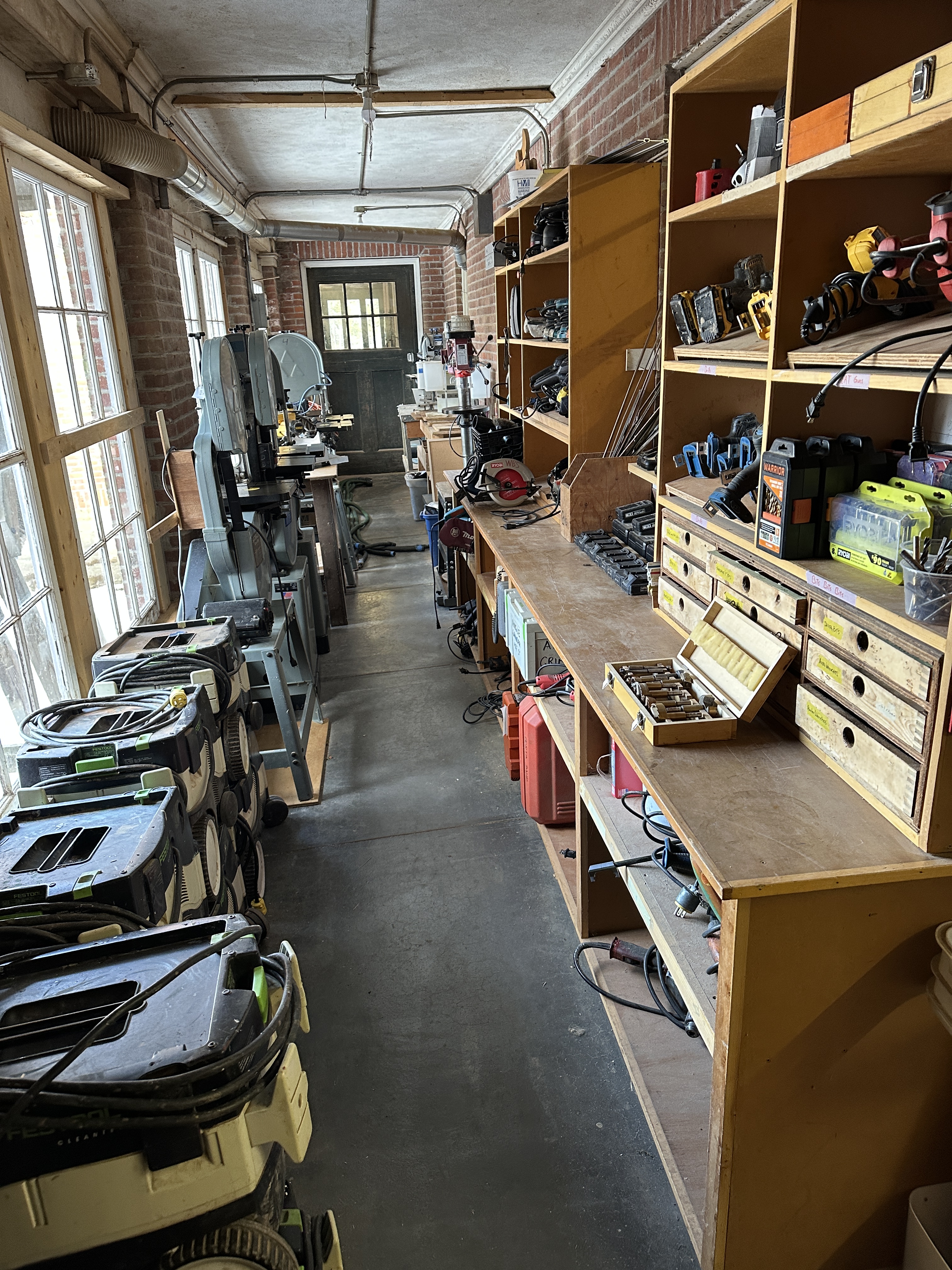 A oficina da WoodenBoat School, os equipamentos e os materiais disponíveis para os alunos são excelentes.