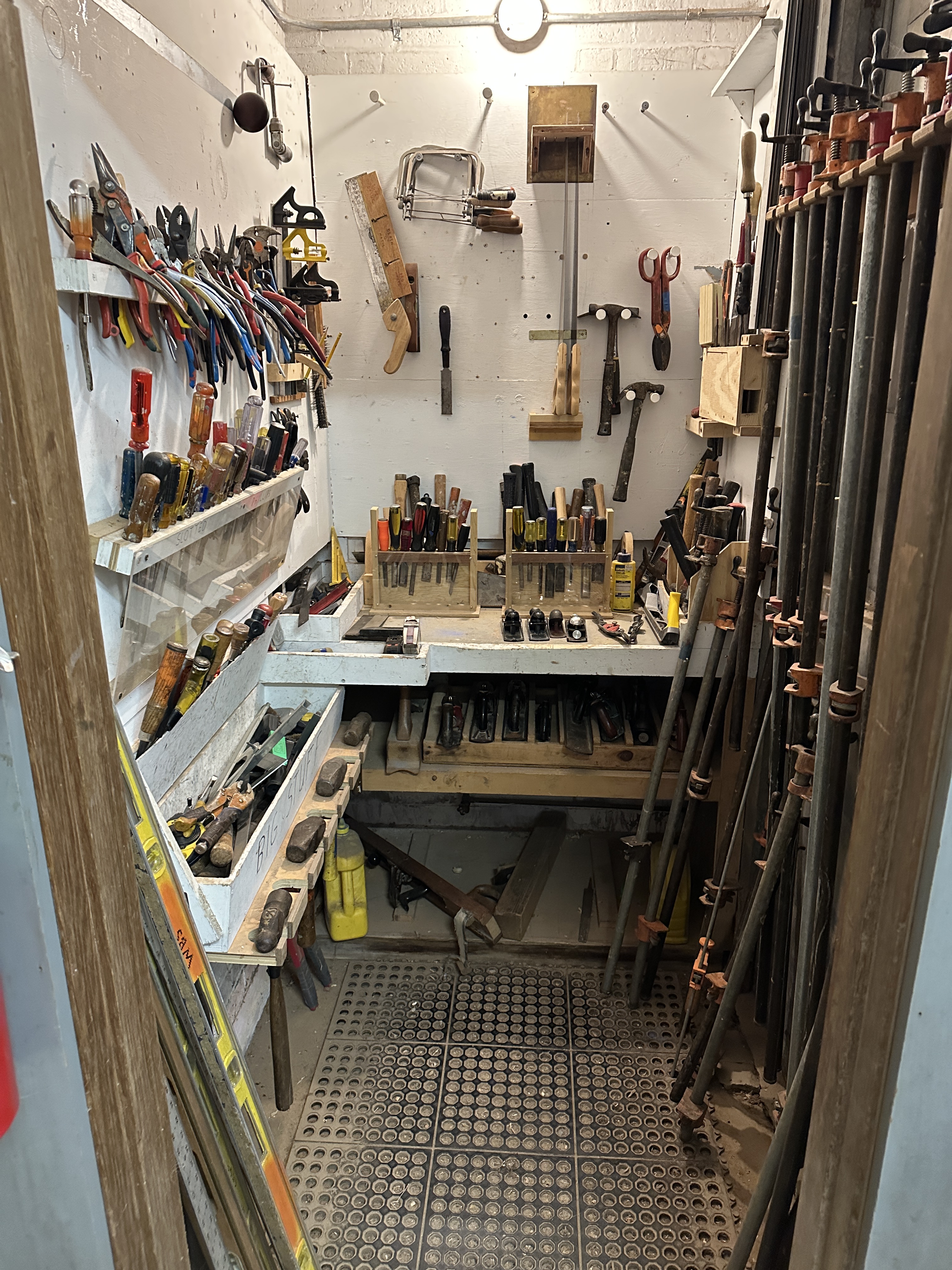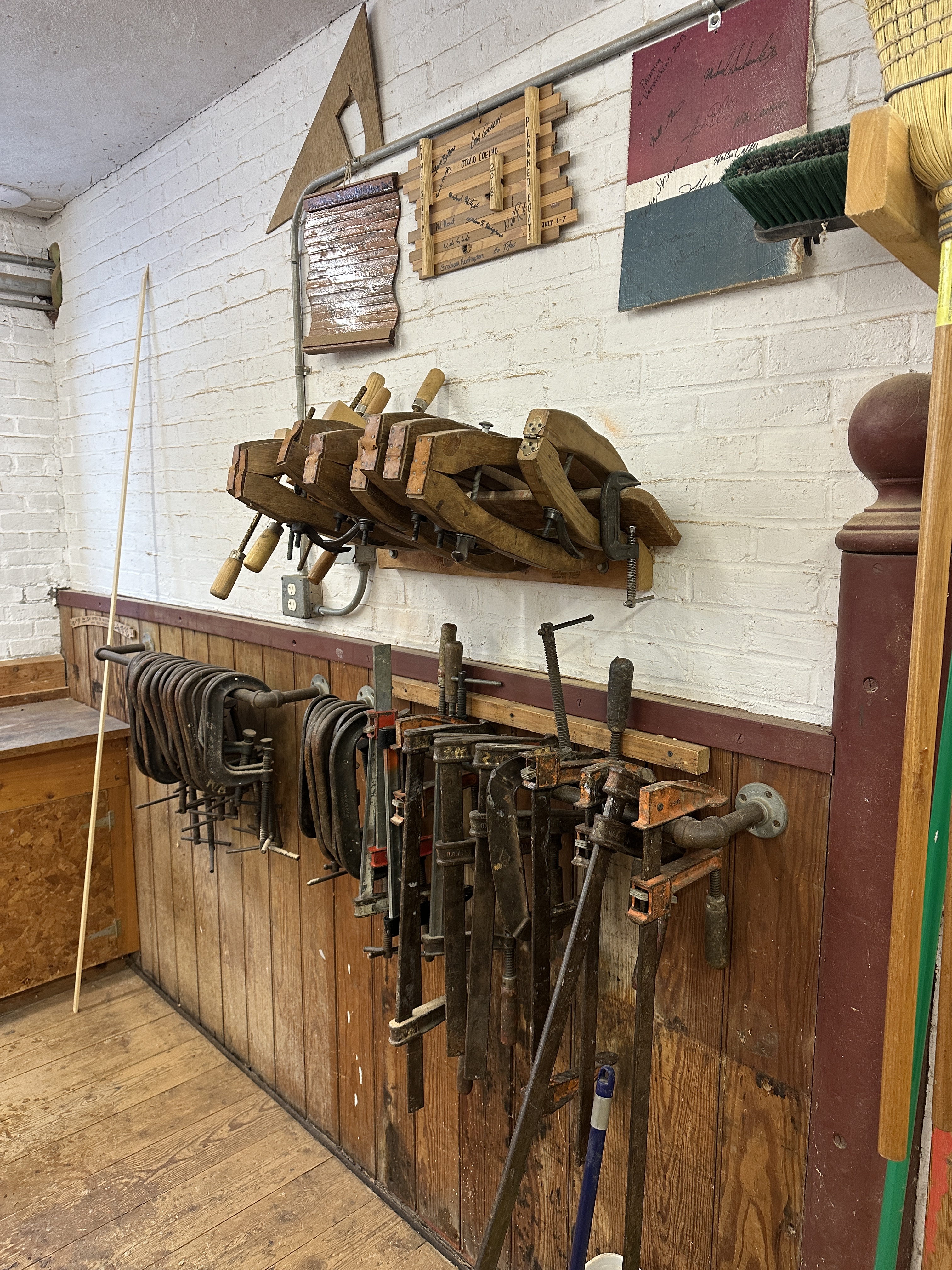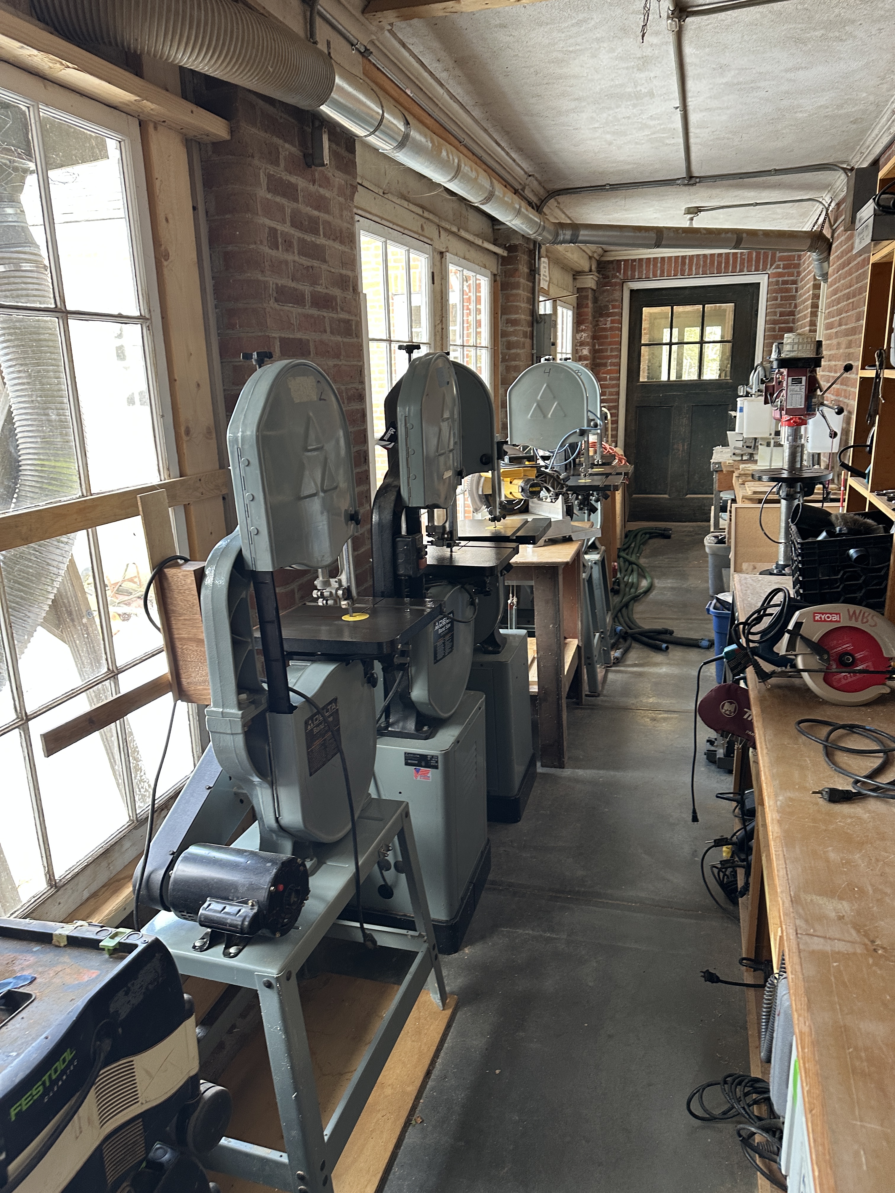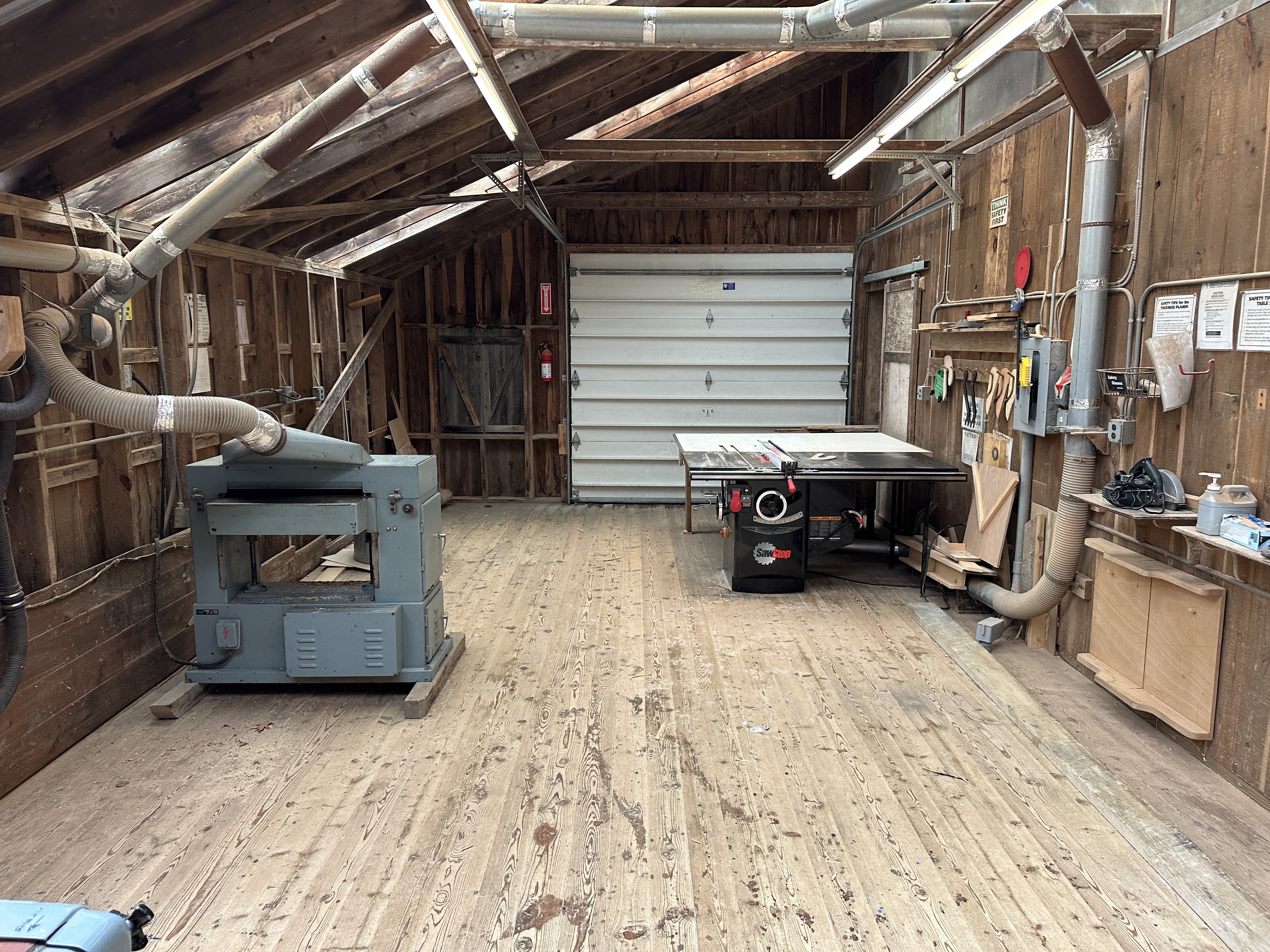 A oficina da WoodenBoat School, os equipamentos e os materiais disponíveis para os alunos são excelentes.