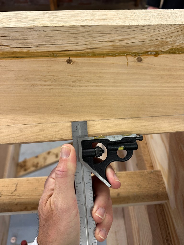 Assim que o Peapod estava alinhado, começamos a “pensar” onde colocar as tábuas e, para isso, usamos a tabela de medidas fornecidas pelo designer, identificando e marcando no molde, o lugar exato onde as futuras tábuas seriam colocadas, usando, nesse momento, apenas ripas de madeira.