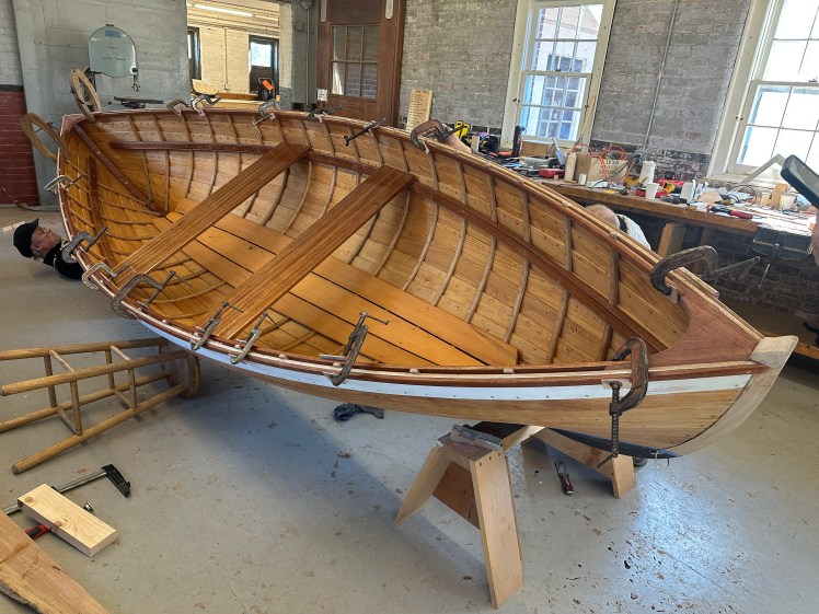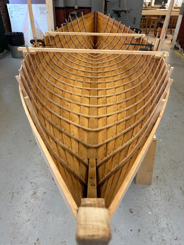 Esta aula se concentrará em métodos tradicionais, incluindo rebites, pregos de fixação, hastes aparafusadas, encaixes entalhados à mão com formões e muito mais. Sem o auxílio de adesivos modernos, esta construção será realizada com um alto padrão de juntas perfeitas, linhas harmoniosas e proporções adequadas. Este Peapod se juntará à frota e será usado pelos alunos na próxima temporada.