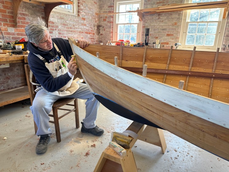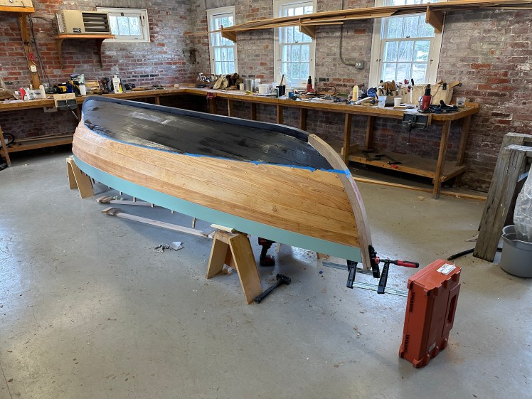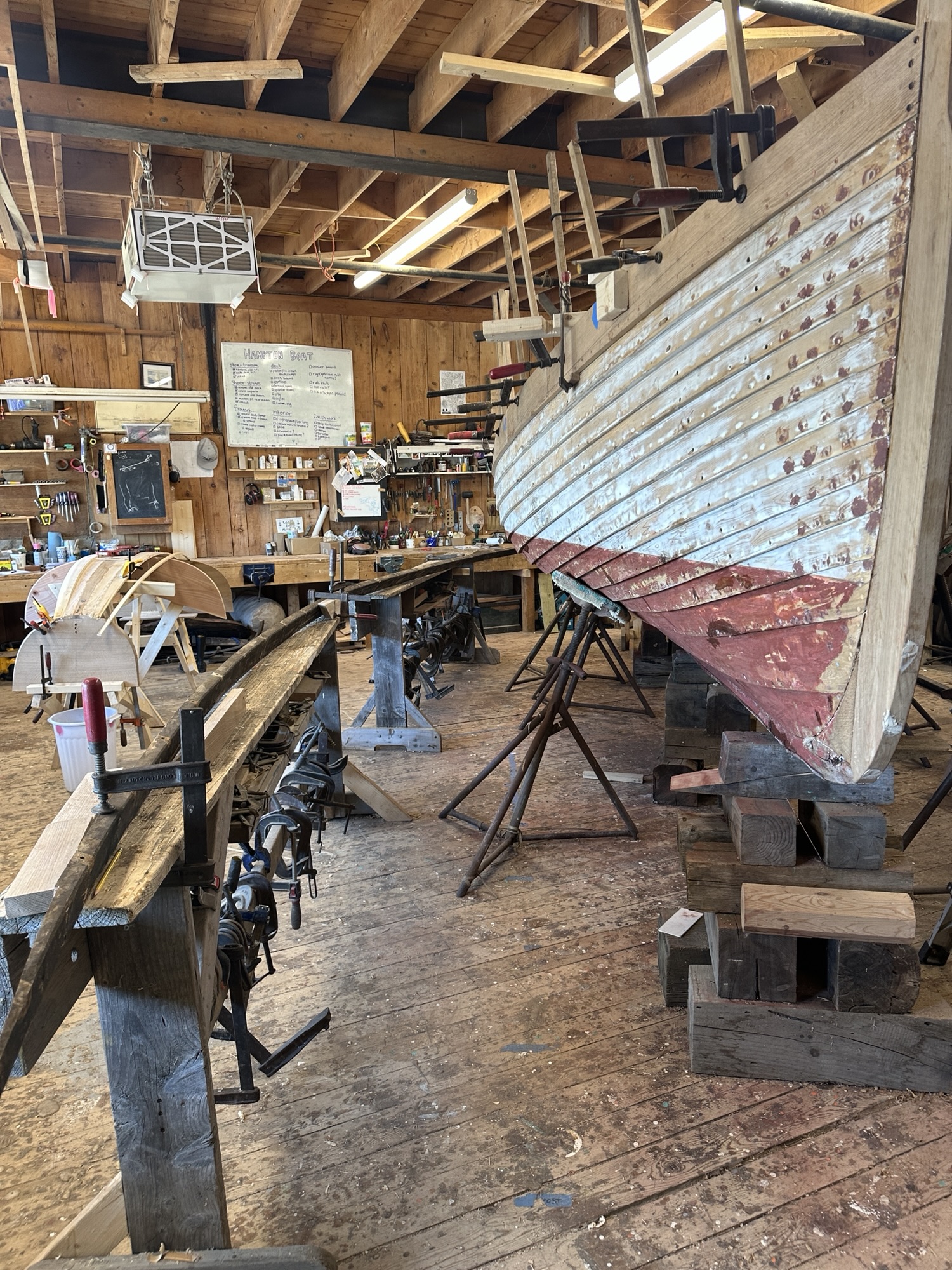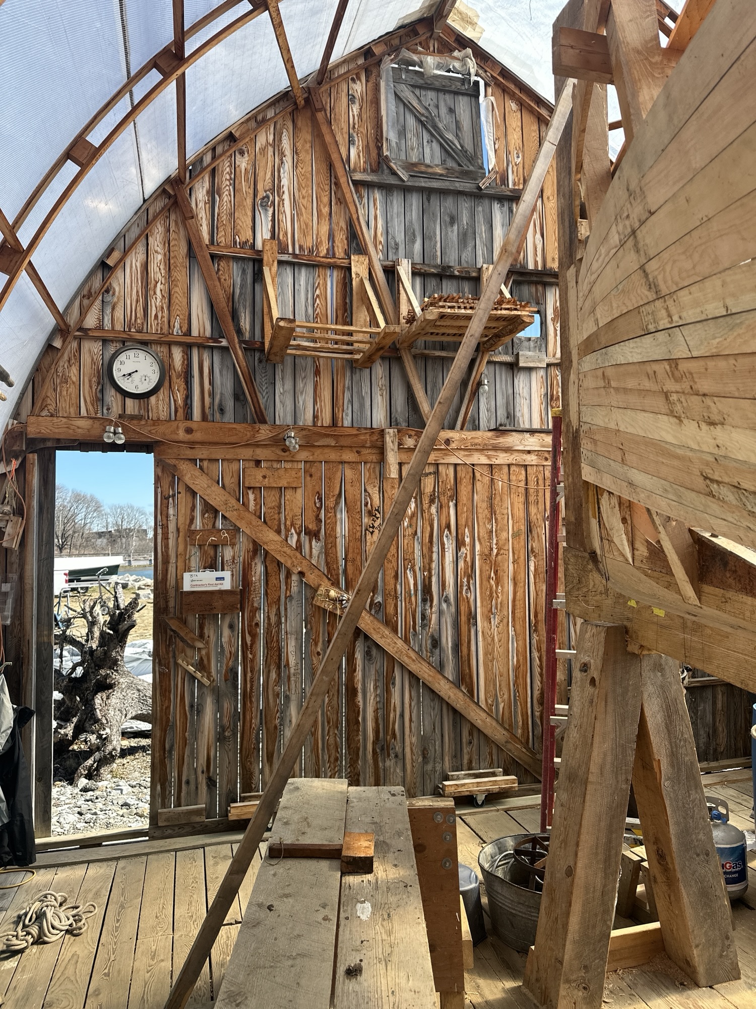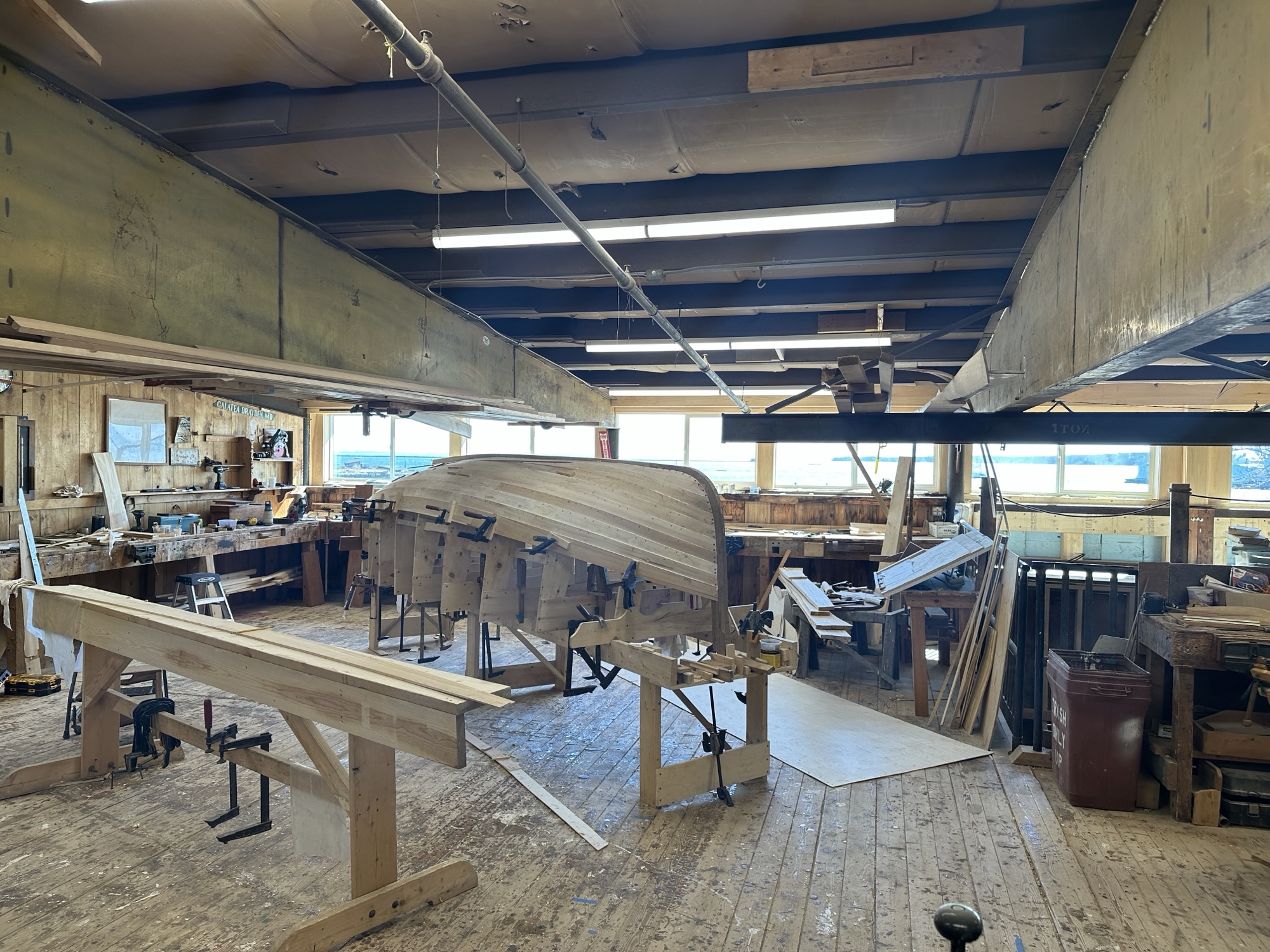 Outra coisa legal oriunda da escolha do Peapod, foi que, por de ser um barco pequeno, foi possível ser construído dentro das oficinas aquecidas da WoodenBoat School… fato que, o “tupiniquim tropical” que aqui escreve agradeceu imensamente, já que fazia muito frio lá fora, inclusive, com vários dias abaixo de zero e com neve!