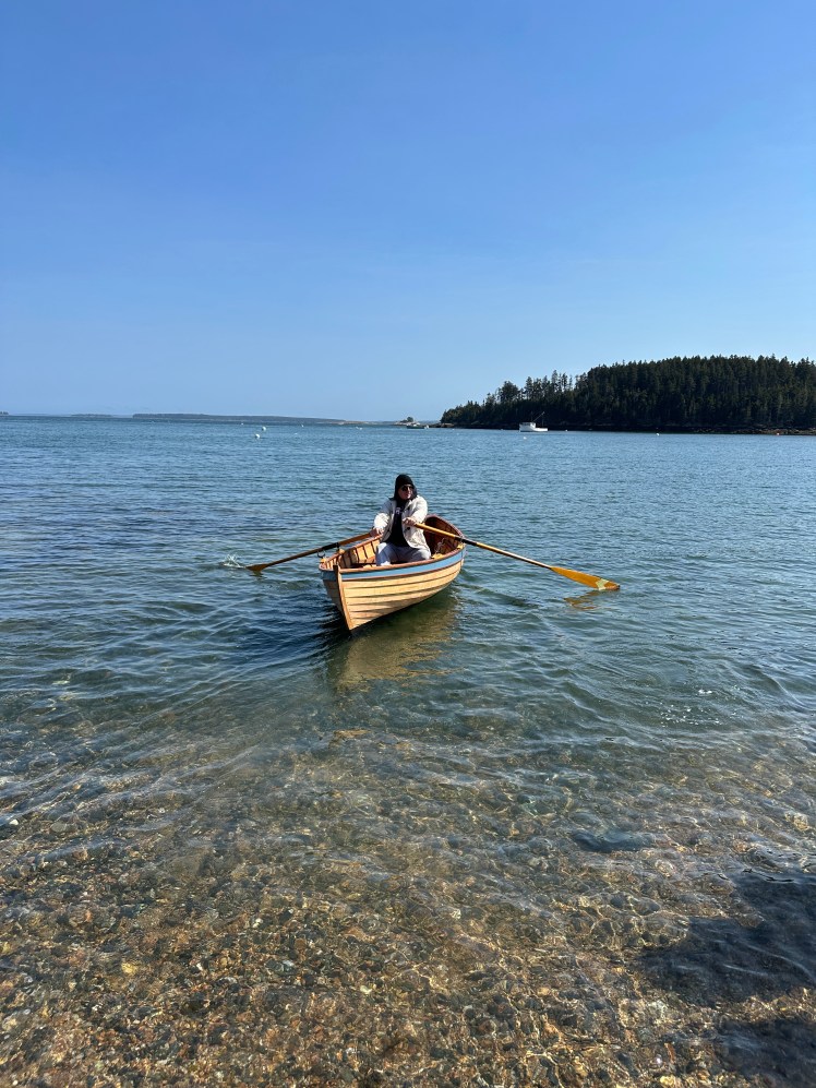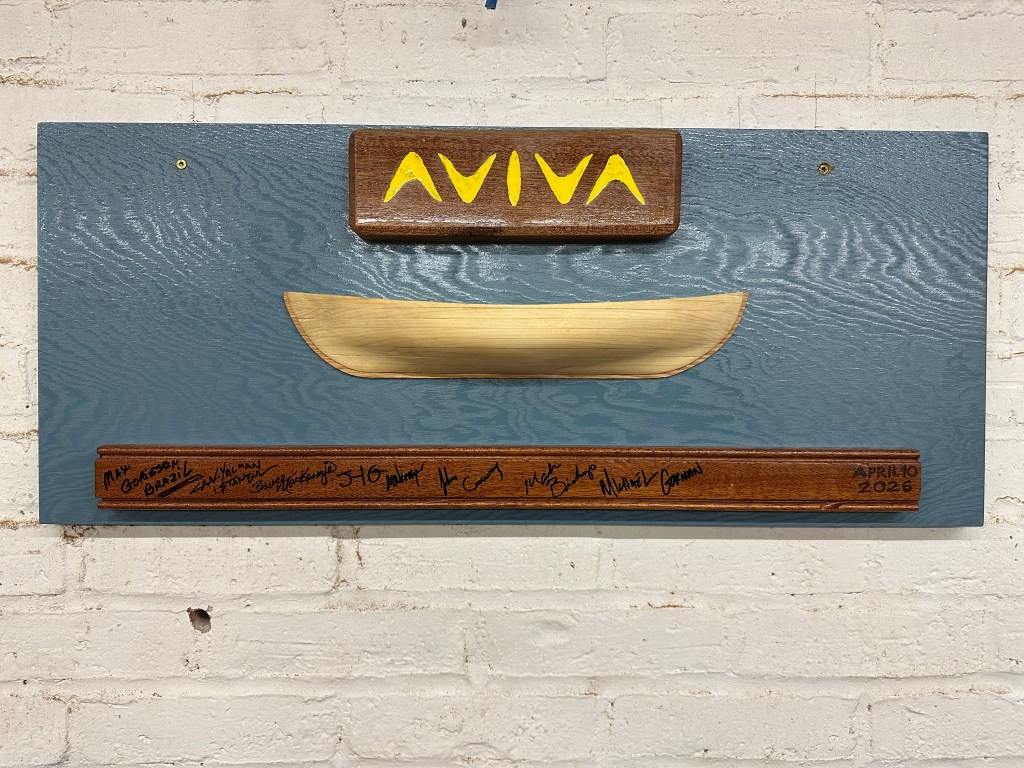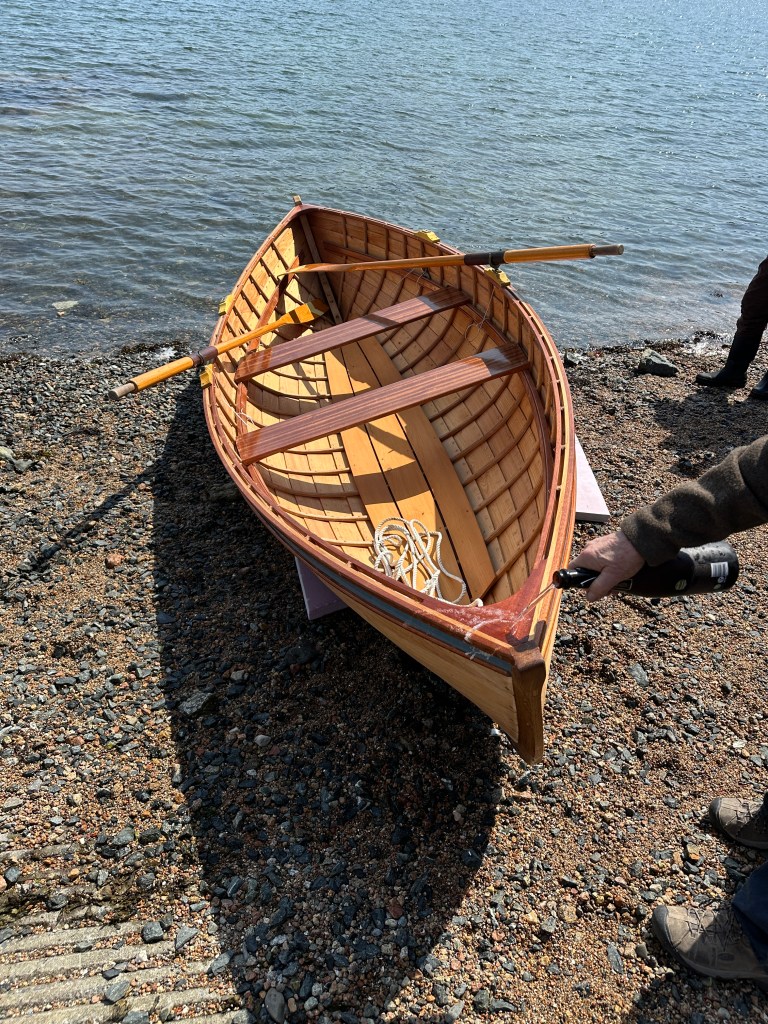 Na sexta-feira, dia 10 de abril de 2026 às 13:00 hs, com a presença de todos os alunos, dos instrutores, dos funcionários da WoodemBoat School e Magazine e de vários familiares e amigos, fizemos uma festa de lançamento do “Aviva” na prainha de pedra ao lado do “Naskeag Point – Boat launch”, localizado em Jericho Bay, bem em frente à Harbor Island.