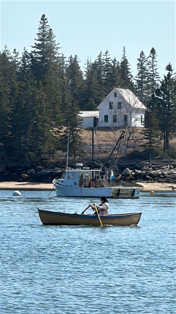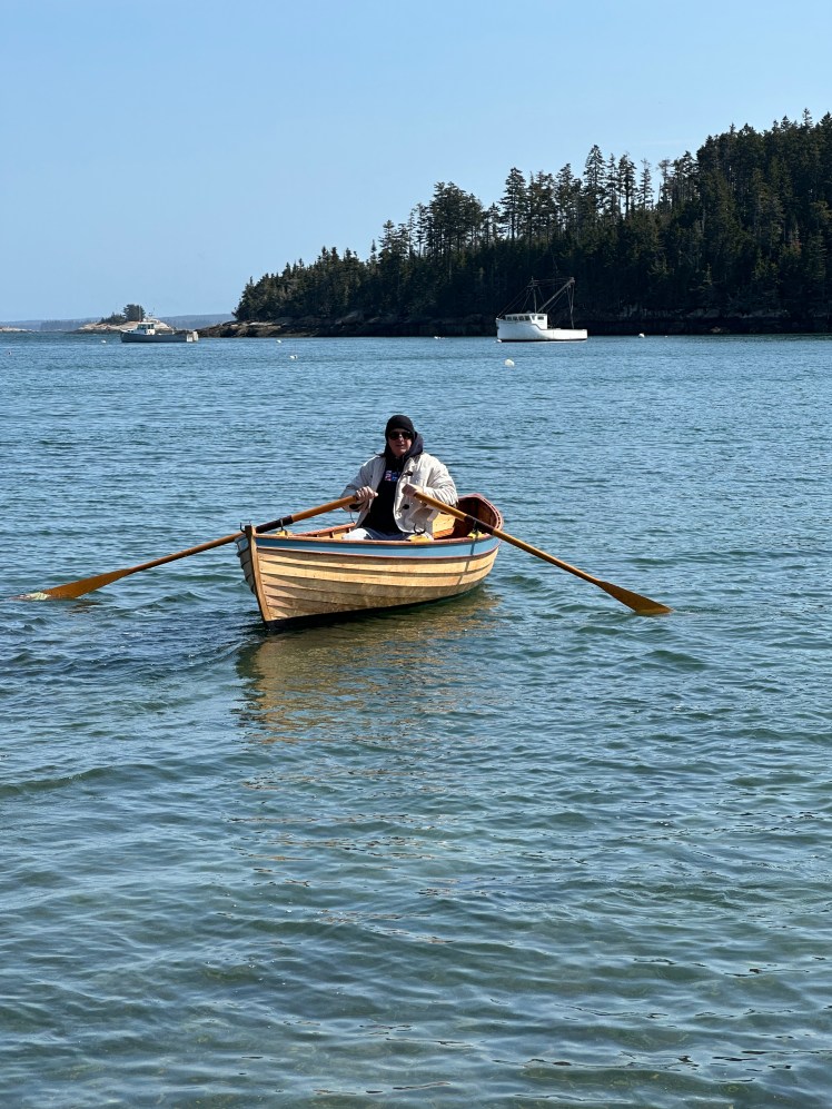 Ao perguntar quem queria ser o primeiro, não resisti e me prontifiquei! Na primeira vez, fui acompanhado do Jim (Almirante), um dos alunos que tinha 85 anos (ex-homem da marinha Norte Americana e velejador experiente em veleiros clássicos com inúmeras aventuras por estes mares) e que participa regulamente dos cursos da WoodenBoat School. O homem, além do seu conhecimento, tem mais energia do que a maioria dos jovens que conheço!