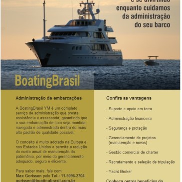 A BoatingBrasil Yacht Management, primeira empresa no Brasil a oferecer um serviço independente, profissional e especializado de Administração de Embarcações de Luxo, inova novamente disponibilizando a seus cliente um novo escritório e ponto de apoio dentro das Marinas Nacionais.