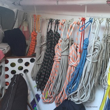 Proa do veleiro Vendetta onde se armazenam as velas e os cabos. Repare nas anteparas furadas para diminuir o peso. Foto da semana de 22/04/2019 Autor: Max Gorissen