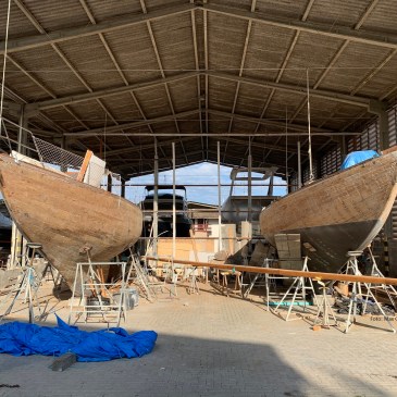 Malagô (esquerda – BL 41 – Ano 1961 – Estaleiro YCB) e Turuna (direita – BL 18 – 1962 – Estaleiro Arataca), dois veleiros Classe Brasil em reforma ao mesmo tempo… repare na diferença do tipo de madeiramento usado e na técnica de instalação… Foto da semana de 20/04/2020 Autor: Max Gorissen