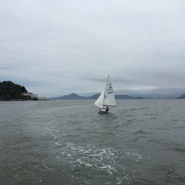 Snipe velejando de popa com Asa de Pombo no Canal de Santos. Foto da semana de 12/11/2018 Autor: Max Gorissen