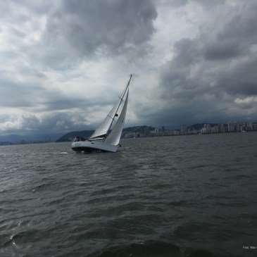 Sob um céu nublado e vento de 14 nós, veleiro se aproxima orçando adernado no canal de Santos. Foto da semana de 31/12/2018 Autor: Max Gorissen
