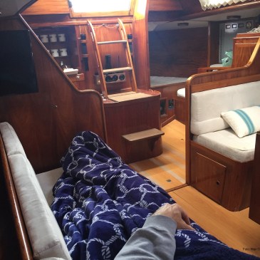 Tirando uma “soneca” todo coberto durante um “raro” dia de frio deste inverno brasileiro. É fácil relaxar e cair no sono deitado no sofá desta aconchegante cabine do veleiro. Foto da semana de 20/08/2018 Enviada por: Max Gorissen