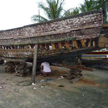 Reforma artesanal de casco em estaleiro de praia. Foto da semana de 20/09/2010 Autor: Max Gorissen