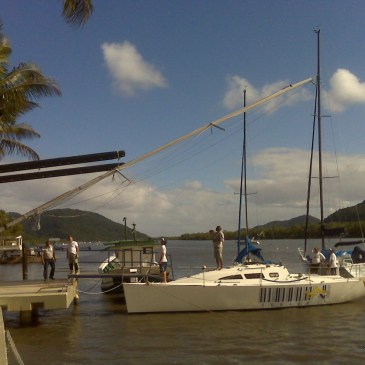 O velho e bom jeitinho de se colocar mastros. Ainda bem que não passou nenhuma lancha fazendo marola. Marina Nacionais – Guarujá – SP. Foto da semana de 21/06/2010 Autor: Max Gorissen