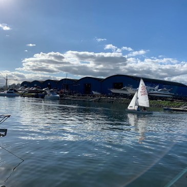 Veleiro Snipe orçando para sair dos canais no Guarujá rumo à Baía de Santos. Foto da semana de 28/06/2021 Autor: Max Gorissen